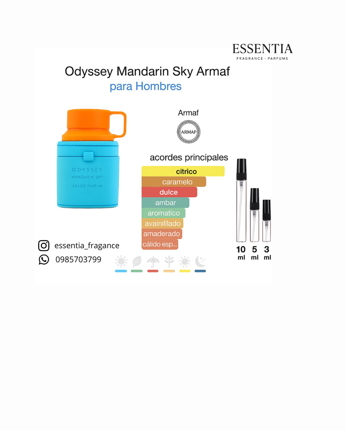 Odyssey Mandarin Sky de Armaf es una fragancia de la familia olfativa para Hombres. Esta fragrancia es nueva. Odyssey Mandarin Sky se lanzó en 2023.